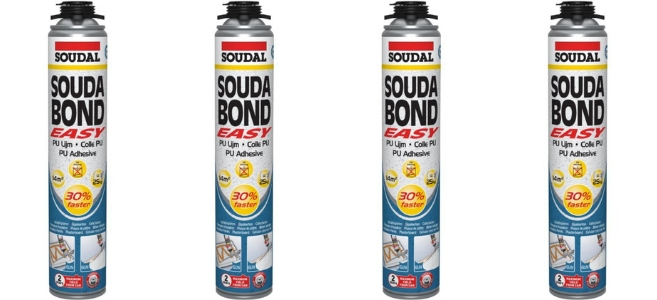 Soudal soudabond easy es un adhesivo de poliuretano autoexpansible, de curado rápido, listo para usar, que permite una unión permanente, limpia, eficiente y económica de paneles de aislamiento, placas de yeso y muchos otros materiales de construcción. aplicación con pistola.